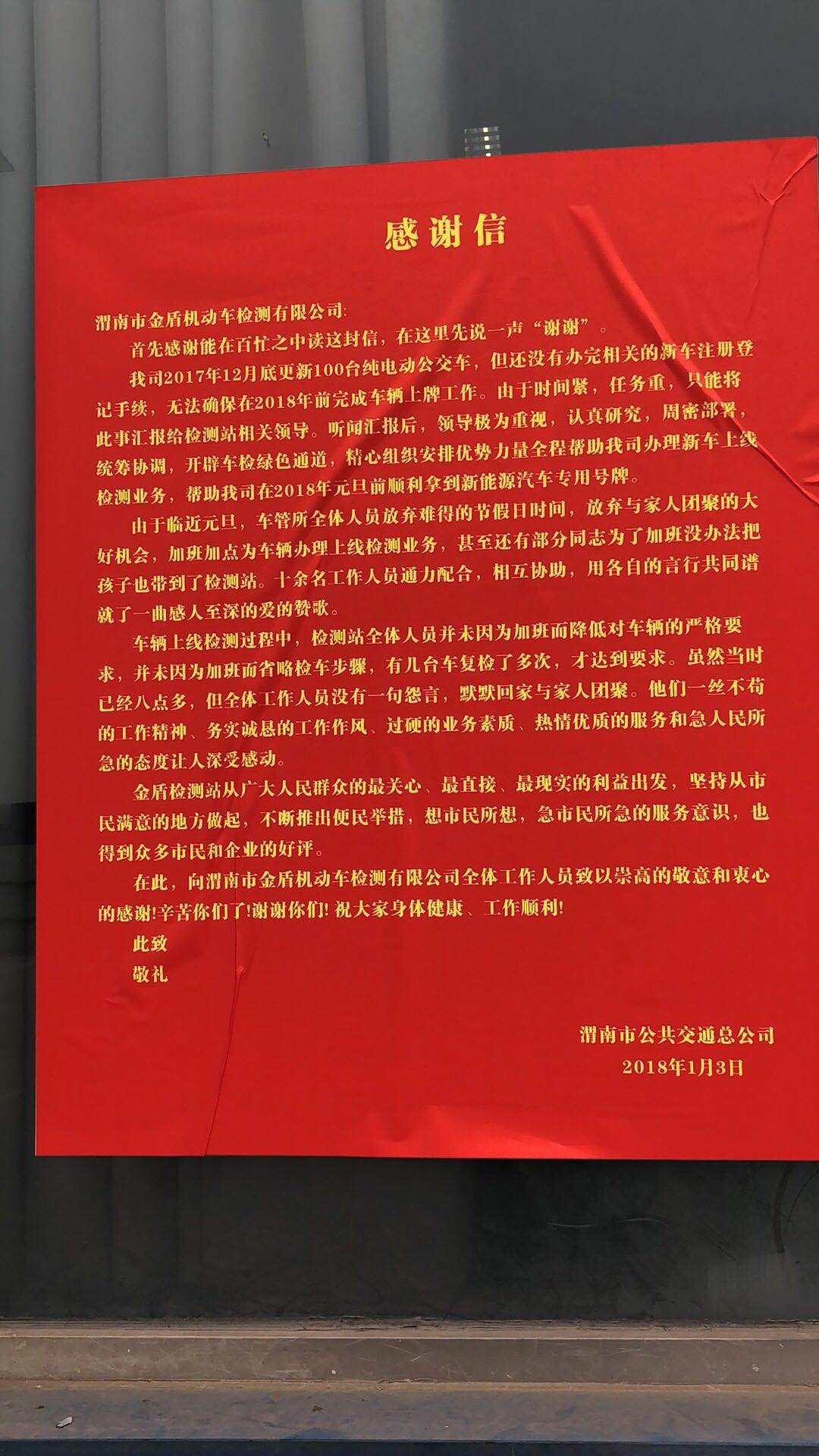 金盾機(jī)動(dòng)車檢測公司收到一面錦旗和一封感謝信